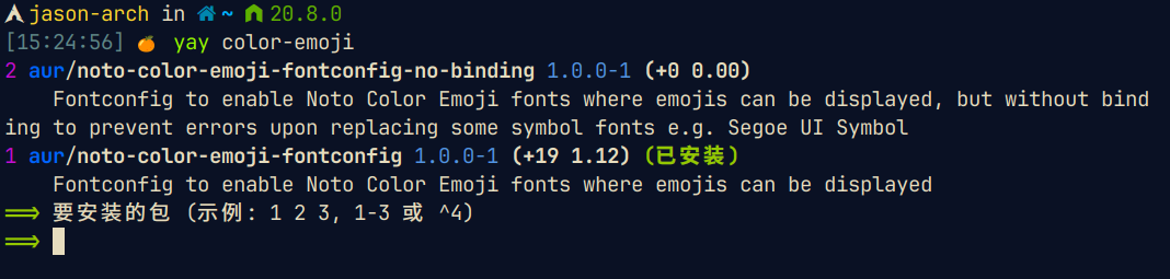 /etc/fonts/conf.d/68-color-emoji.conf这个配置文件,我欣喜的去找,发现我的目录下没有这个配置文件。但是很显然这个配置文件不是自己直接创建就可以使用的类型。我的解决问题之路陷入了迷茫期。 - 这期间反复尝试过了重新安装 emoji 字体,都没有生效,直到我在无意间尝试安装 emoji 的时候发现了这个仓库,救命稻草啊!安装完成之后,果然我也有了需要修改的配置文件,直接修改,再重启输入法,问题解决了!