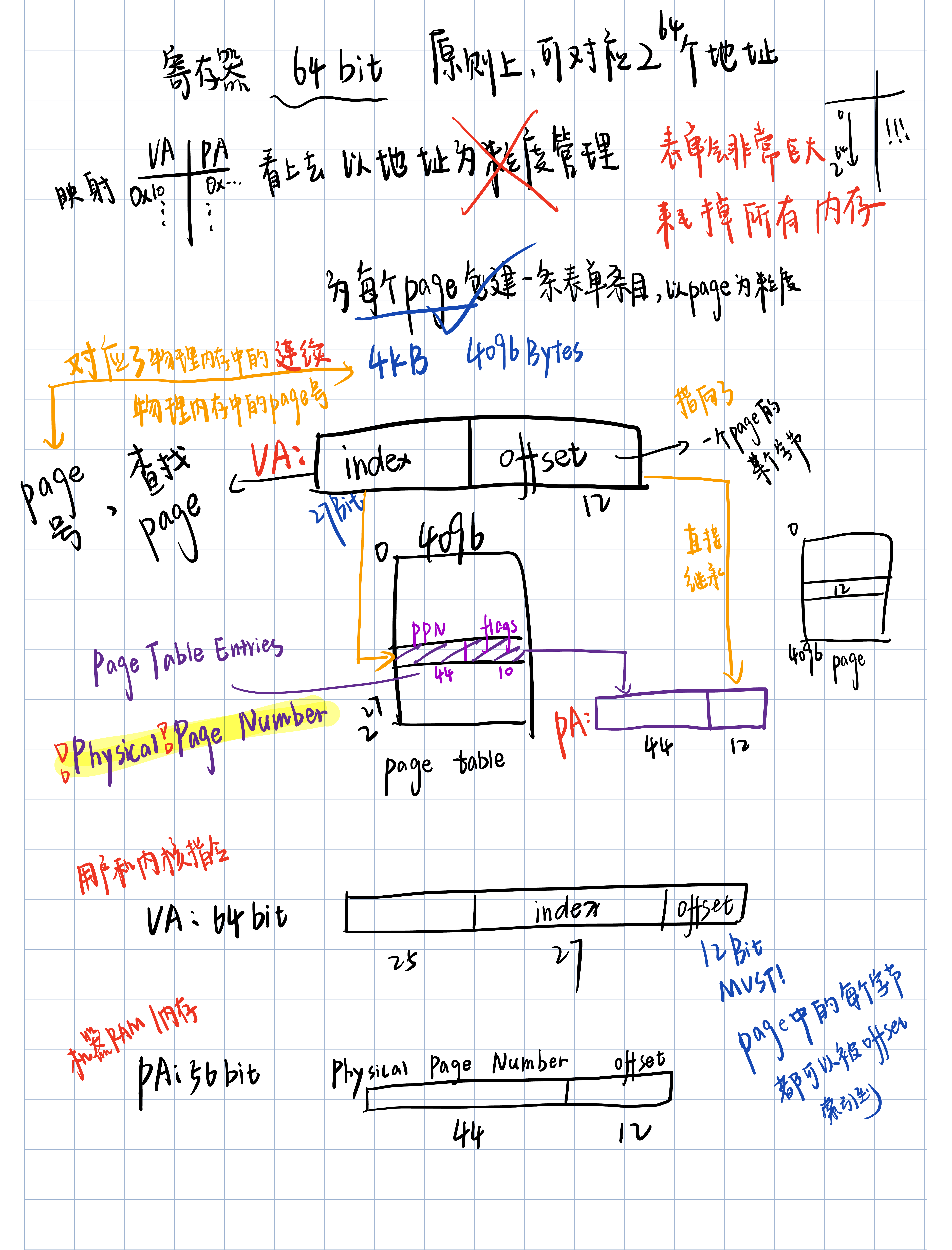 为每个page创建一条表单条目,所以每一次地址翻译都是针对一个page。而RISC-V中,一个page是4KB,也就是4096Bytes。这个大小非常常见,几乎所有的处理器都使用4KB大小的page或者支持4KB大小的page。